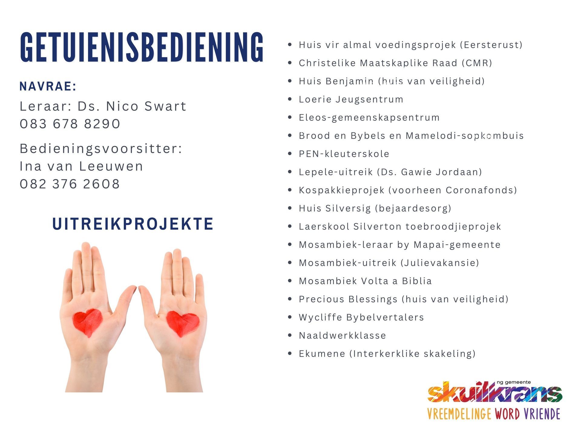- Raak betrokke by van ons projekte - vind die groepe op die gemeente se WhatsApp-gemeenskap